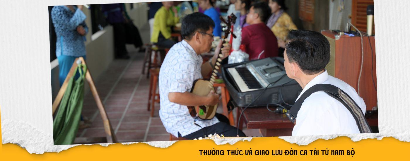 Không gian văn hóa đậm chất Nam Bộ với đờn ca tài tử. Du khách được nghe những giai điệu ngọt ngào và tham gia giao lưu cùng nghệ nhân chân chất.